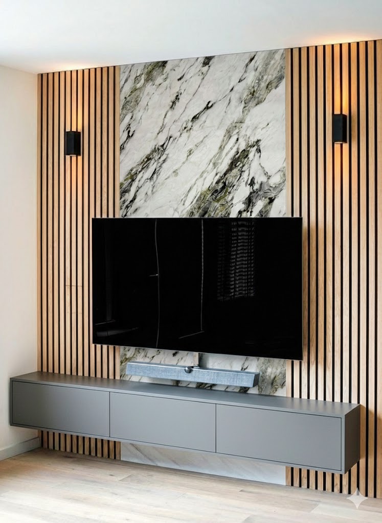 Acabado tipo mármol con vetas naturales y look premium